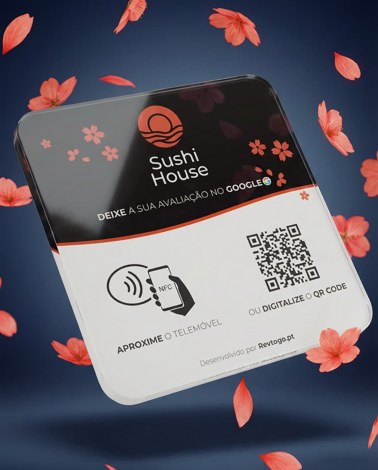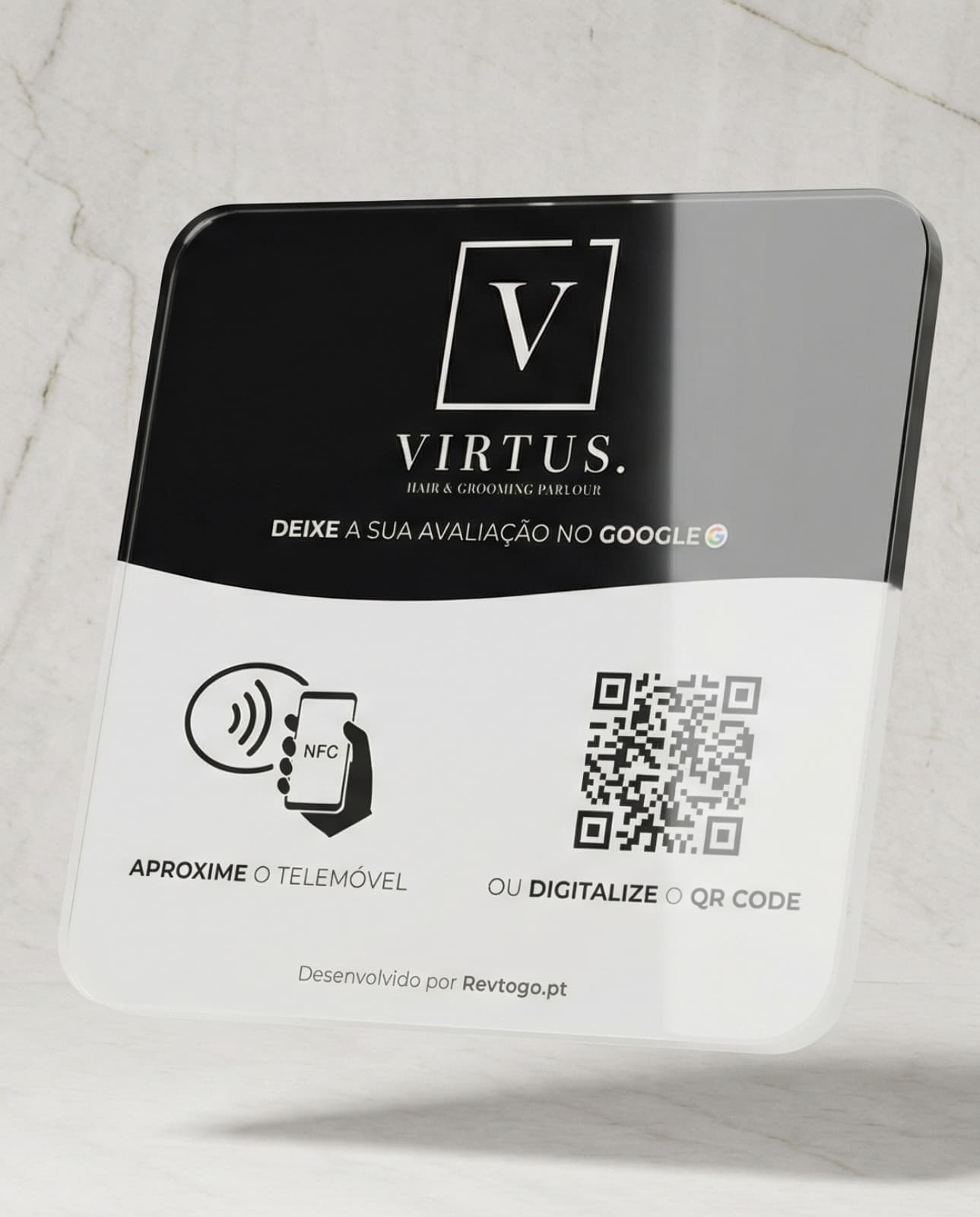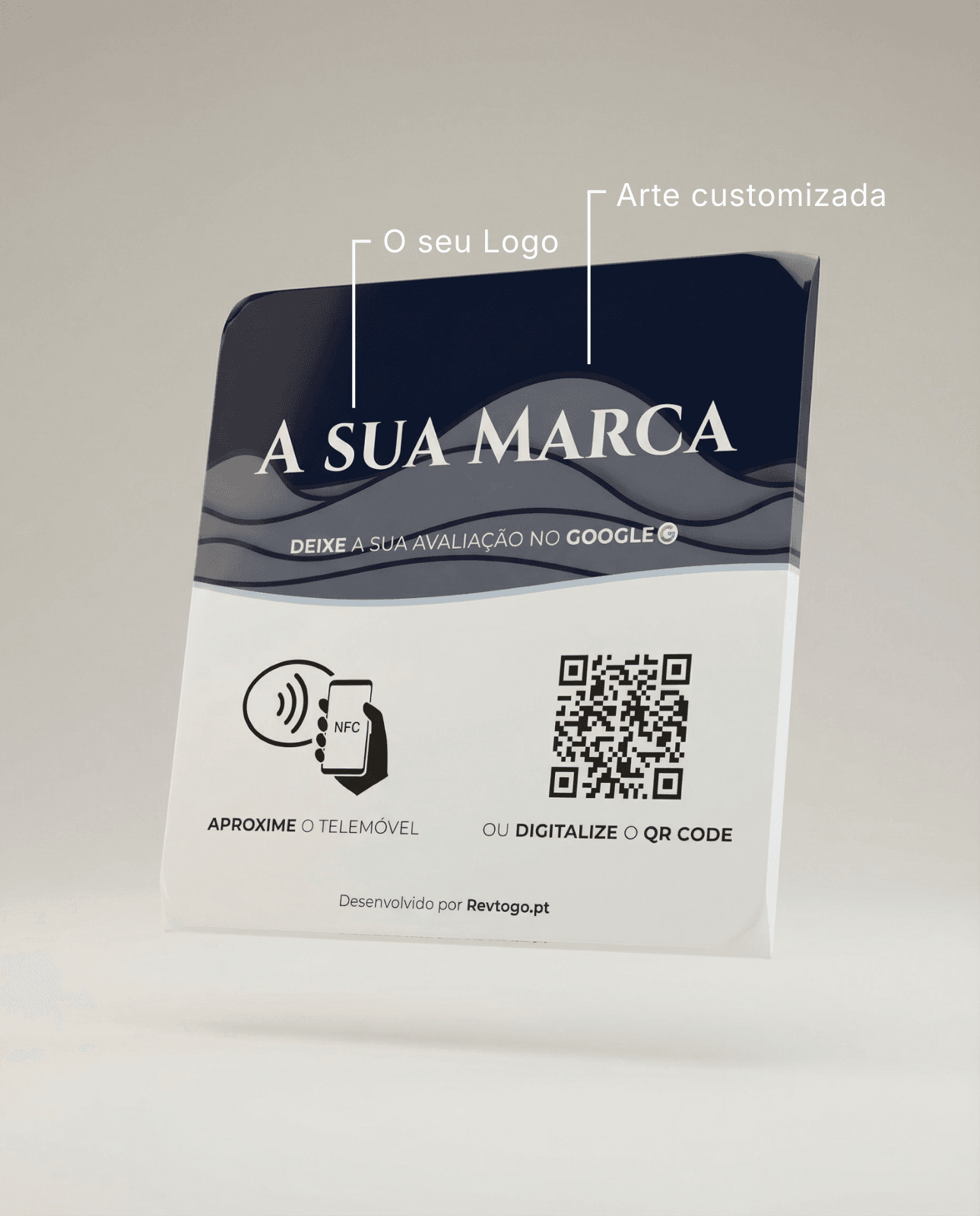 O cliente aproxima o telemóvel da placa e é redirecionado diretamente para a página de avaliação do Google, onde pode deixar a sua opinião de forma simples e imediata.