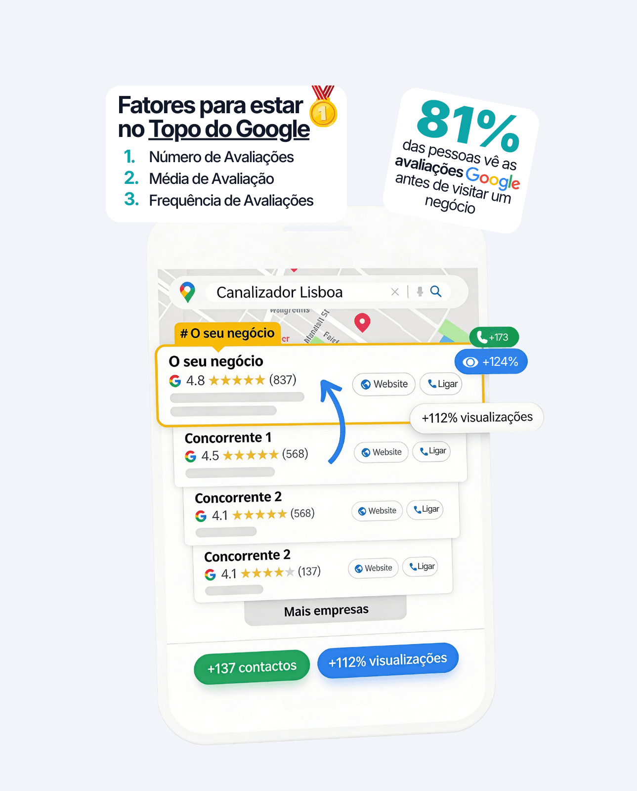 Transforme cada visita numa oportunidade de avaliação. Sem apps. Sem fricção. Resultados visíveis em dias.